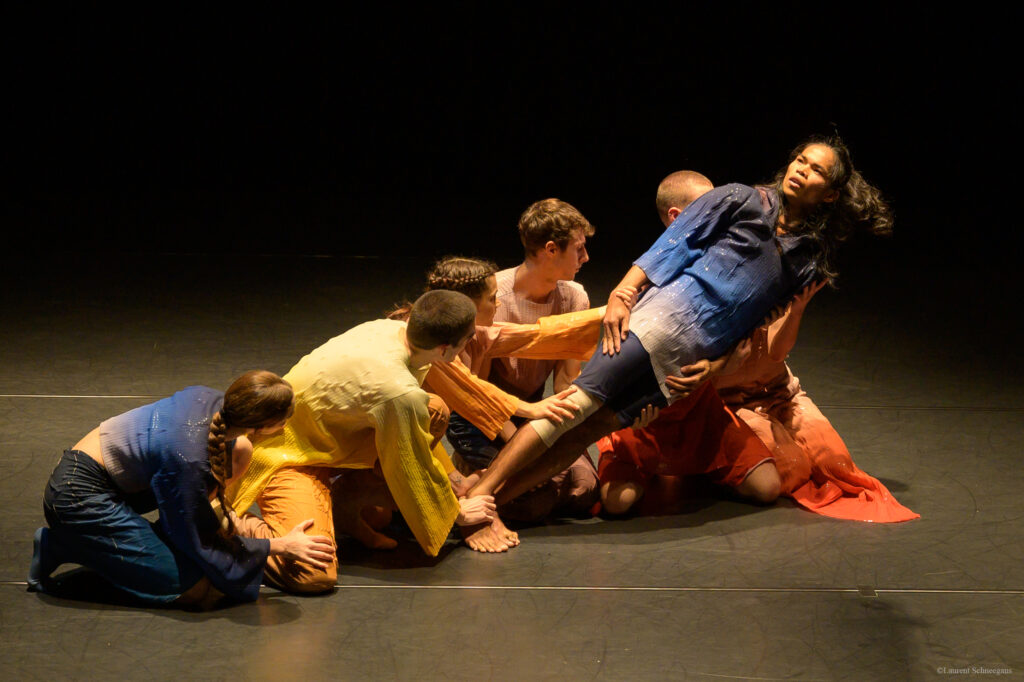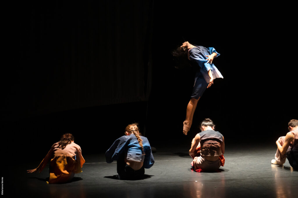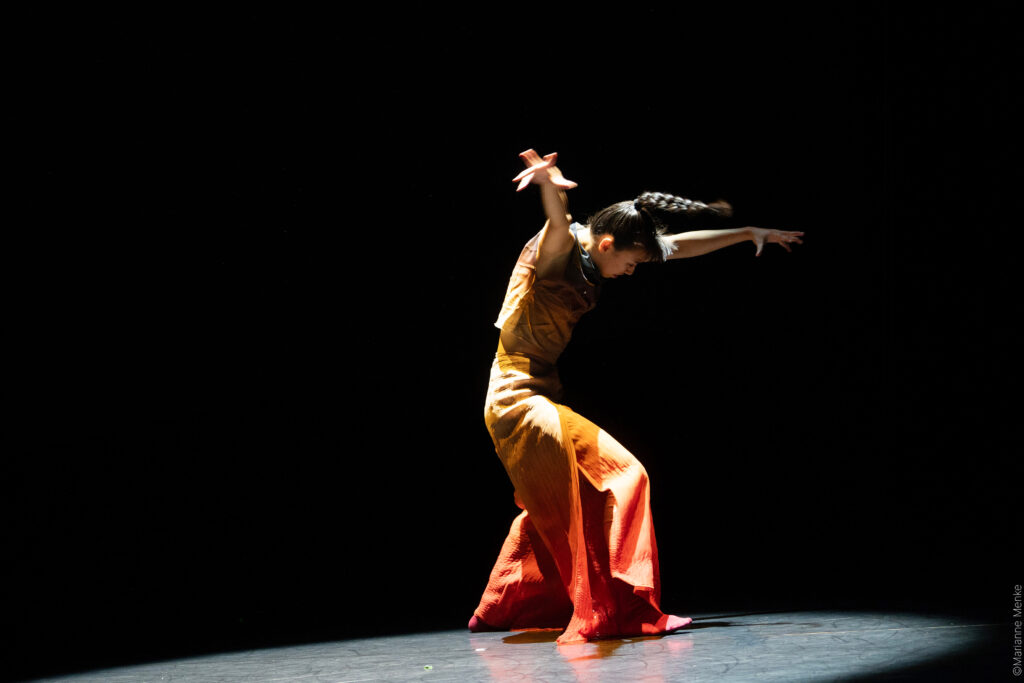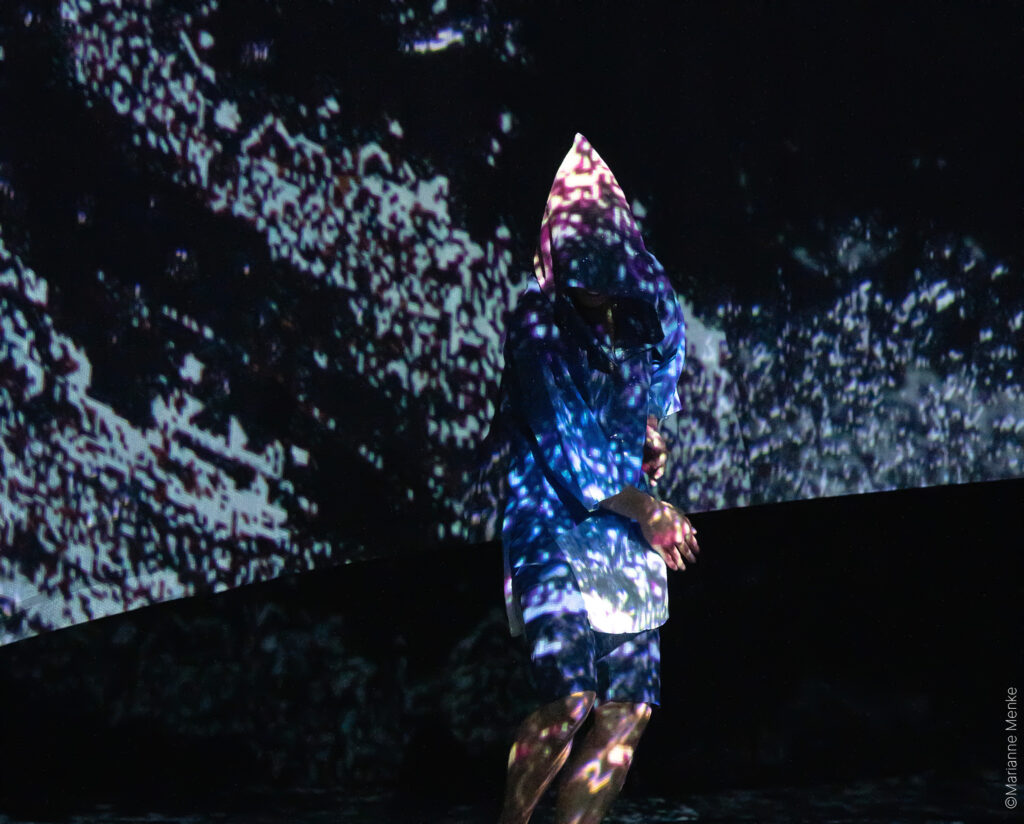 Nomada emerges between dancing bodies, ancient myths and videographic images, allowing seemingly immovable opposites to collide. In the face of nature under pressure and of human confusion inflicted by artificial intelligence, she laughs at the all changes, escapes any grip, meets you in dreams and emerges from the ashes of your bonfires, where you sit weeping for each and every dying species.