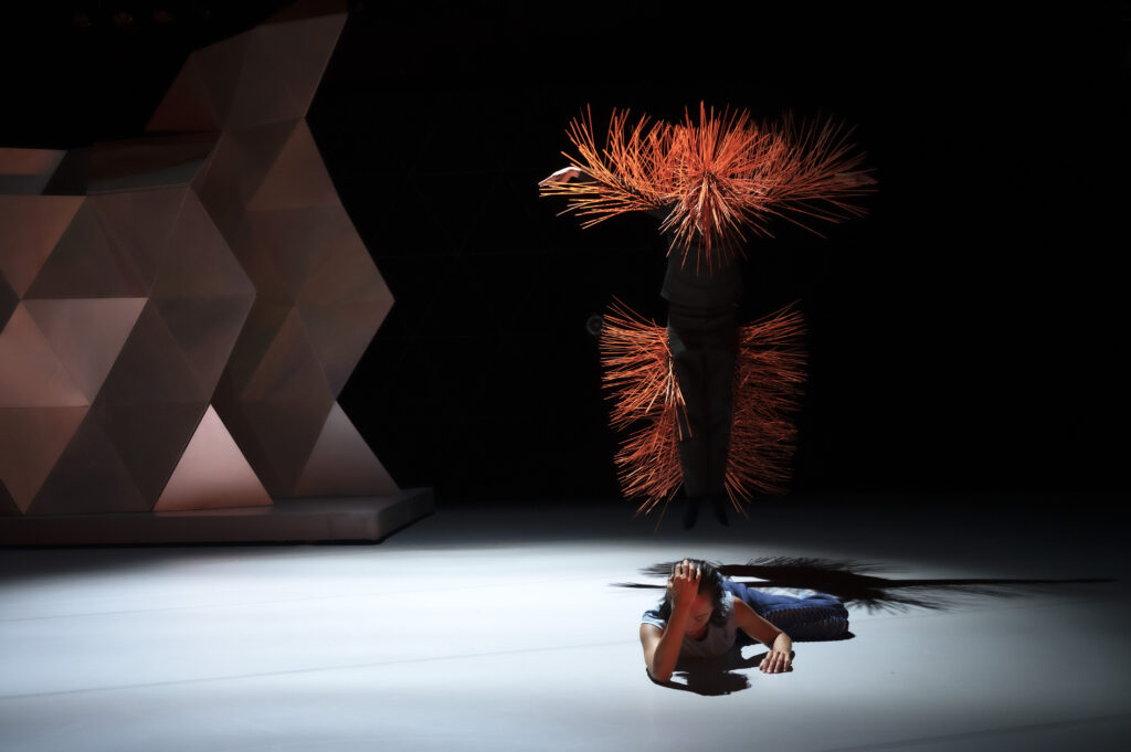These are reflected back, carried on in duets with each other, explode in solos and combine in the group. Britta Bremer’s stage, with its central object, becomes a point of reference, a trigger and an enhancer. Accompanied by the contemplative composition “Voices” by Max Richter, the latter’s poly‐phonic declaration of human rights opens up a universal space of references.