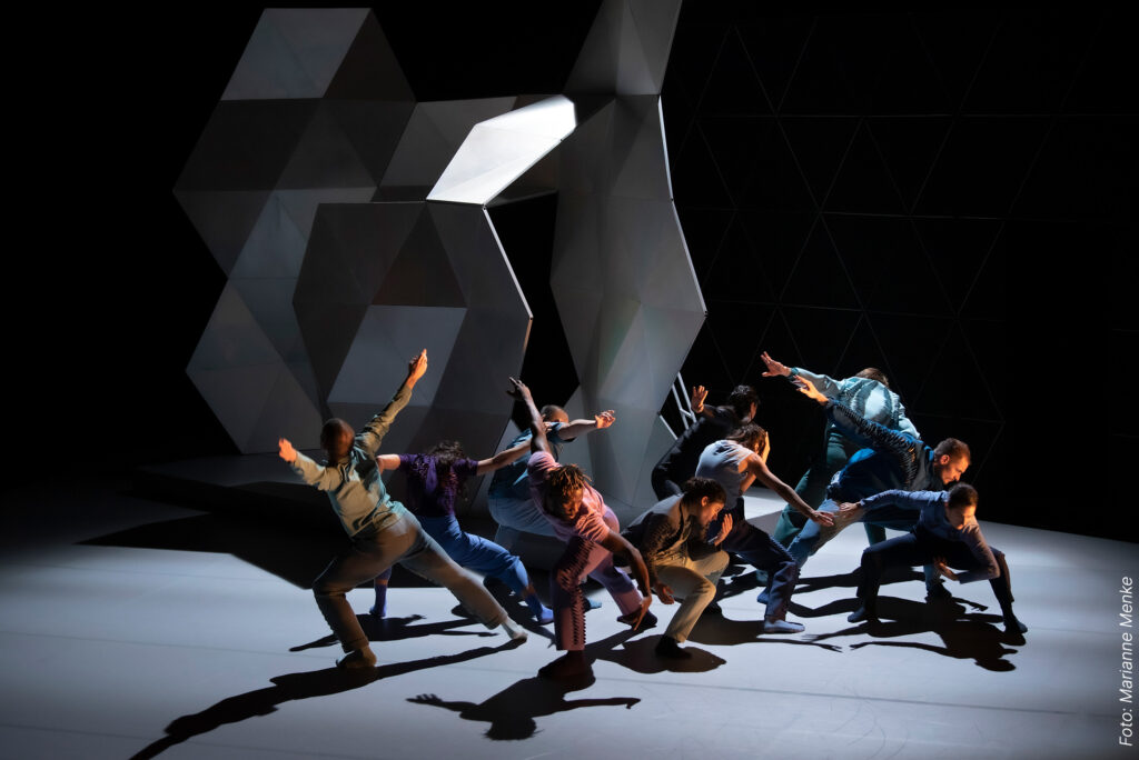 The starting point of the dance piece that Helge Letonja creates with the ensemble are current observations on restlessness, the pressure of acceleration and the loss of people’s ability to resonate. Starting with a lamen‐ tation in all its beauty. The emotional content is reflected as an echo in the space and resonates in the move‐ ments of the dancers. Frequencies from the depths of human existence line up in cascades of movement and spread like seismic waves.