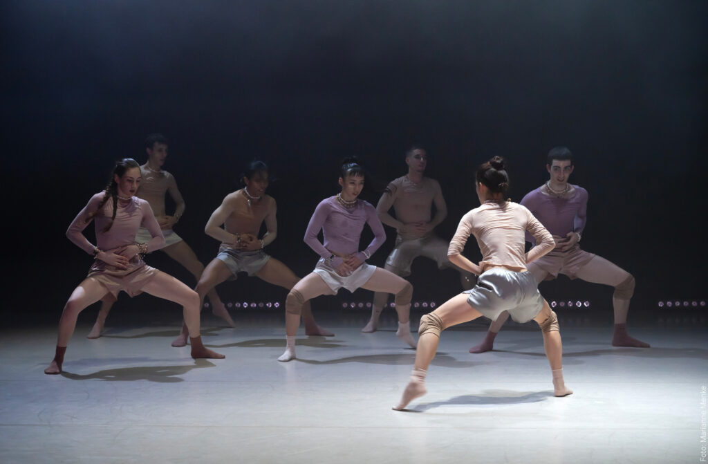 Zur vielschichtigen Komposition „The Bird Of A Thousand Voices“ des armenischen Komponisten Tigran Hamasyan weben die Tänzer*innen aus ihren individuellen Körpern eine bewegte Topografie, die ihre vielgestaltigen Energien weiterträgt. Manchmal wellt sie wie ein gemeinsamer Atem, manchmal trägt sie eine individuelle Facette an die Oberfläche. Kann die Gruppe den vielen Stimmen ihres Gefüges eine Melodie entlocken, in der wir uns gemeinsam wiederfinden?