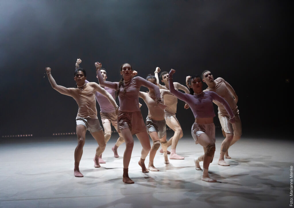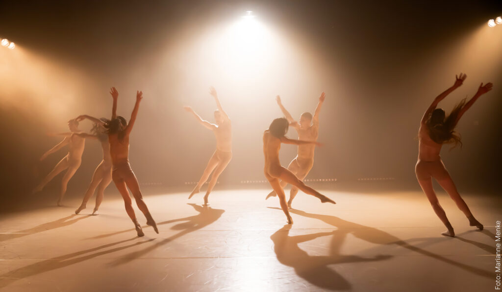 „Fulgence“ (der/das Strahlende) entwickelt sich aus einer nervenaufreibenden Realität hin zu einem Akt der Befreiung. Durch ausstrahlende Energieexplosionen aus Bewegungen und Ausbrüchen der Euphorie sucht das Ensemble unsere innere und äußere Dunkelheit zu vertreiben. Wirbelnd und pulsend treiben die Tänzer*innen die Entladung an die Oberfläche: Die fiebrigen Körper tanzen in einem Akt des Widerstands und erhellen mit ihrer inneren Strahlkraft die Schatten unserer Existenz.